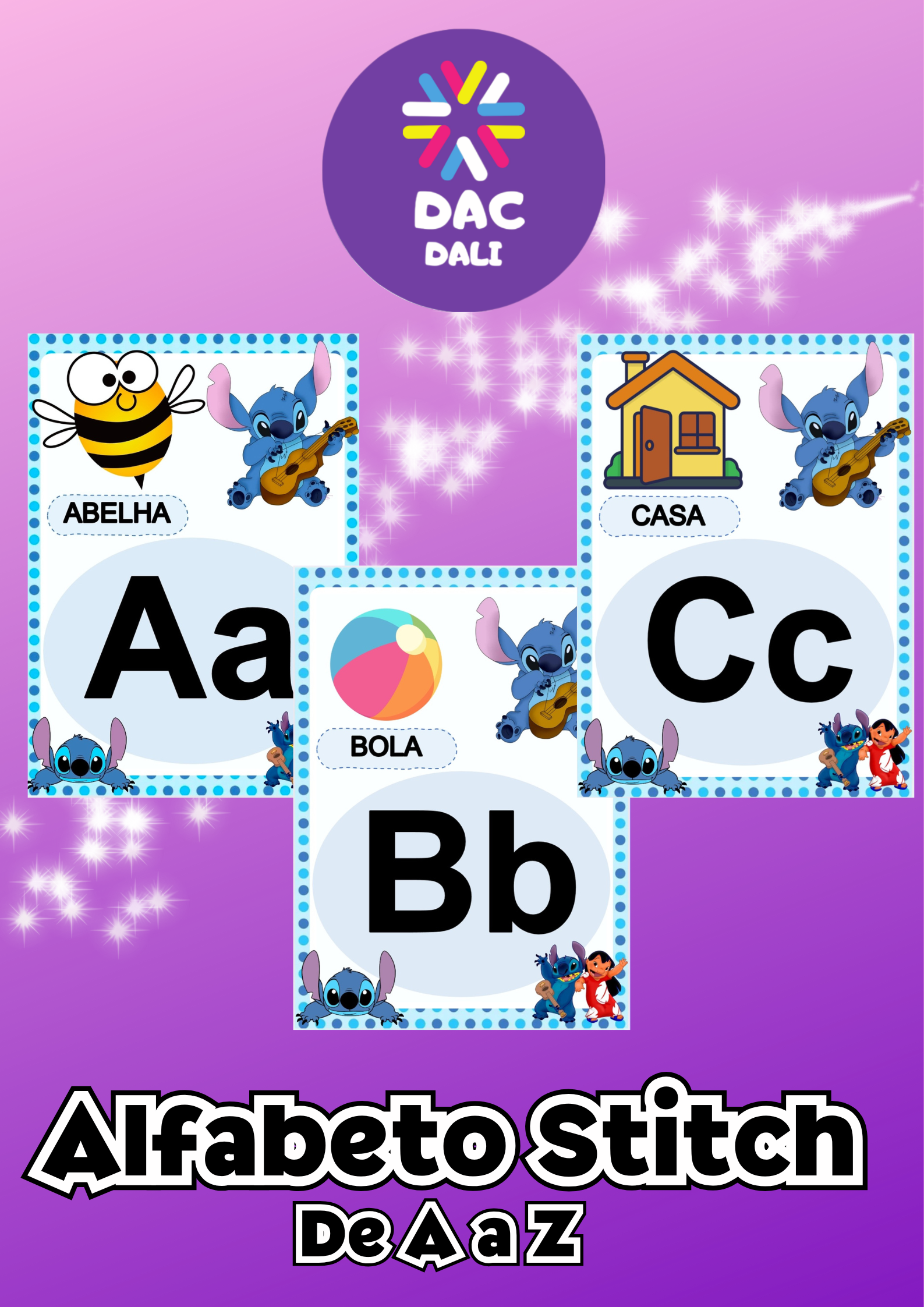 raga mais diversão e encanto para o aprendizado com o Alfabeto de A a Z Tema Stitch, uma criação exclusiva da Dac Dali Ensino!